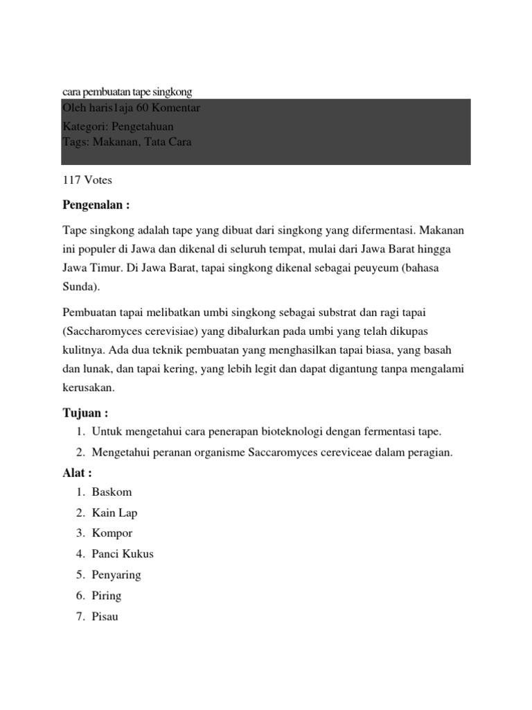 Cara Membuat Tape Singkong Kering : Resep Cara Membuat Tape Singkong Peuyeum Oleh Mira Jabir Cookpad _ Anaking minta dibikinin donat dari bbrp bulan kemaren, tp krn ibuknya lg ngidam pgn masak yg lain jadi baru sempet hari ini.. Selain ubi jalar, kamu dapat memanfaatkan bahan lain untuk campuran adonan donat yaitu tape singkong. Anda bisa mencoba cara membuat tape sendiri di rumah. 400 gram gula merah, iris tipis; Jun 06, 2021 · resep tempe homemade pandan. Terima kasih banyak sudah diberi kesempatan oleh cookpad indonesia @cookpad_id dan kak benny dari initempe bali @initempeid untuk belajar buat tempe.